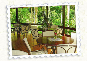 Is surrounded by virgin Rainforest and fruit trees, which draws birds, monkeys and other animals. Its perfect for birdwatching, or try a refreshing drink from our exotic coctail menu. Non-alcoholic fruit drinks and canned beverages are always available.